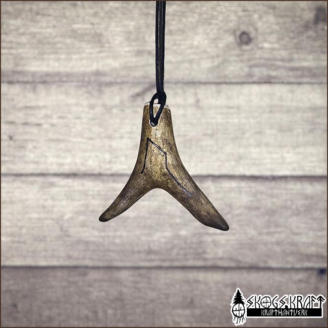 Snyggt halsband med hängsmycke av horn från ren, med inbränd runa.