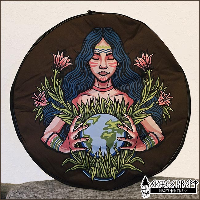 Trumväska med mönster, Moder jord med blommor. Passar för trummor upp till 55 cm.
